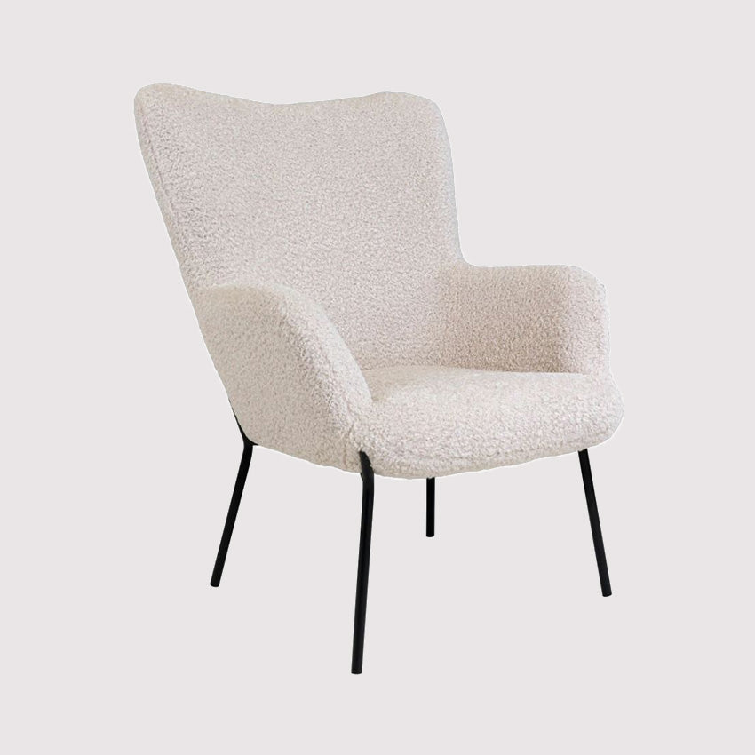 Design Features: The Armchair Glasgow’s sleek black metal legs and natural-colored artificial lambskin add a modern touch to its timeless silhouette. Delivered in a knocked-down form, it is easy to assemble and fits seamlessly into living rooms, reading nooks, or bedrooms.