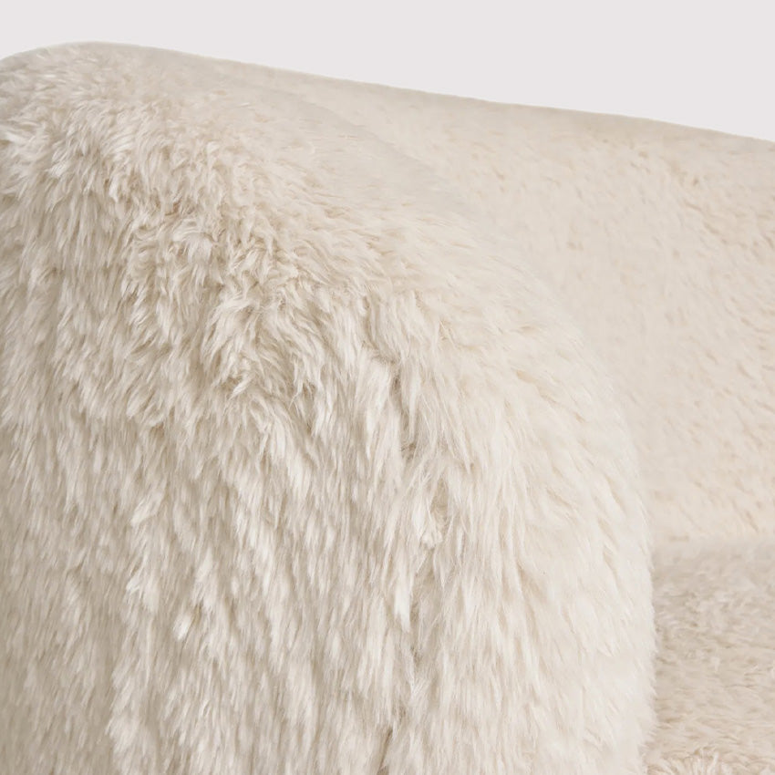 Expertly crafted with a sturdy beech wood frame and high-density foam cushioning, the Lounge Chair Setu offers a luxurious seating experience. The off-white artificial fur upholstery adds a soft, inviting texture while ensuring durability and easy maintenance.