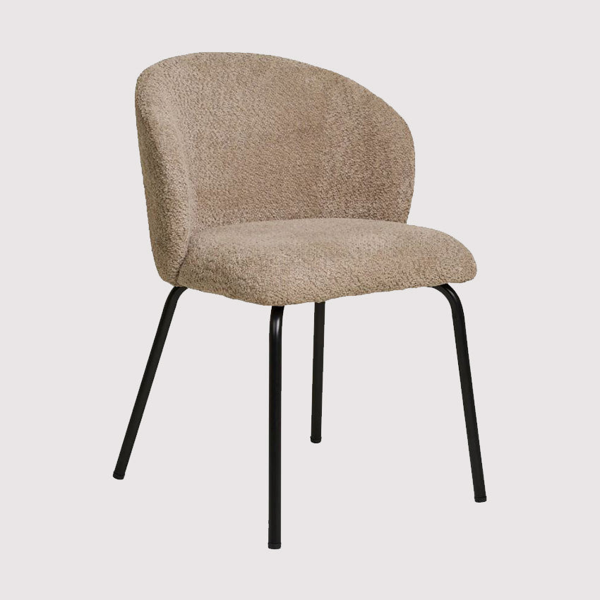 Add a touch of warmth and style to your dining space with the Safira Dining Chair, designed for both comfort and elegance. Its inviting beige upholstery and sleek black steel legs create a sophisticated look that complements any modern decor.